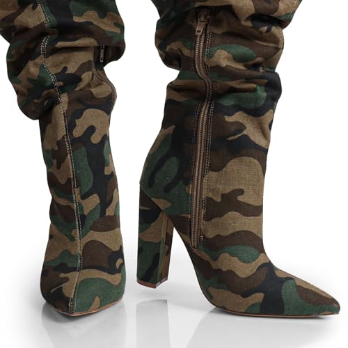 • Featuring: Pull on, Slip on Style for easy on/off , Pointy Toe ,Chunky Block Heel OTK boot.