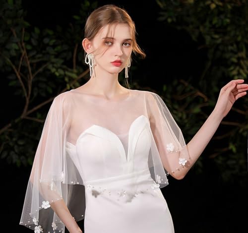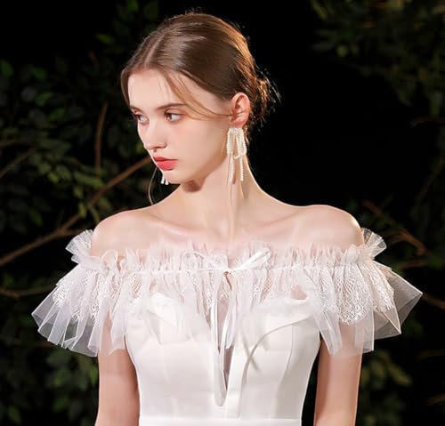 White Tulle Wedding Bridal Shawl Elegant Lace Bridal Shawl Wraps Womens White Wedding Cape Wrap Stole Capelets Scarf Bride 1