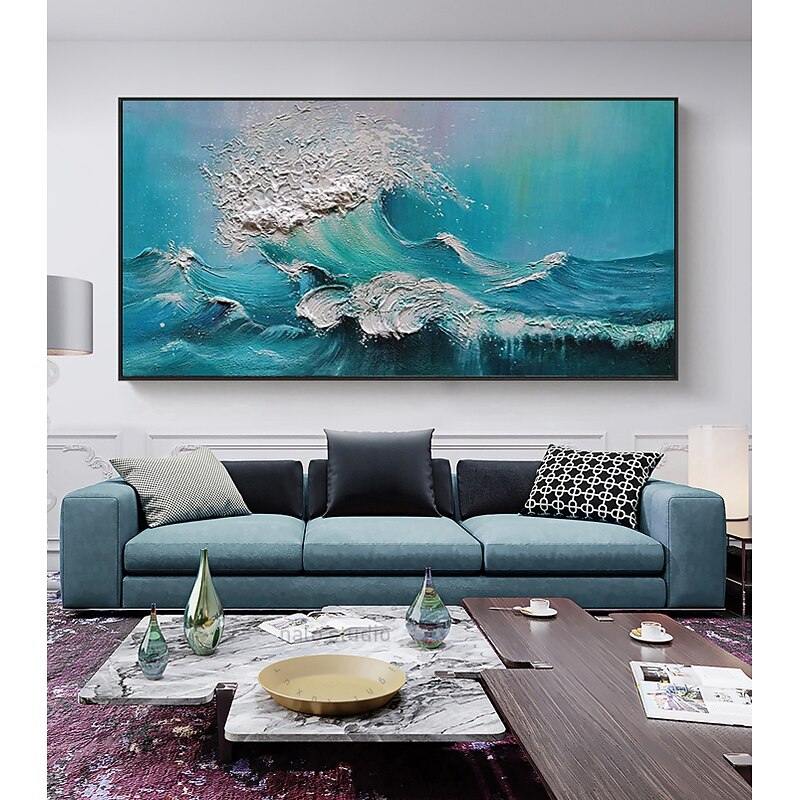 More information about Oil Painting Handmade Hand Painted Wall Art Modern Abstract Landscape Blue Sea Ocean Waves Home Decoration Decor Rolled Canvas No Frame Unstretched