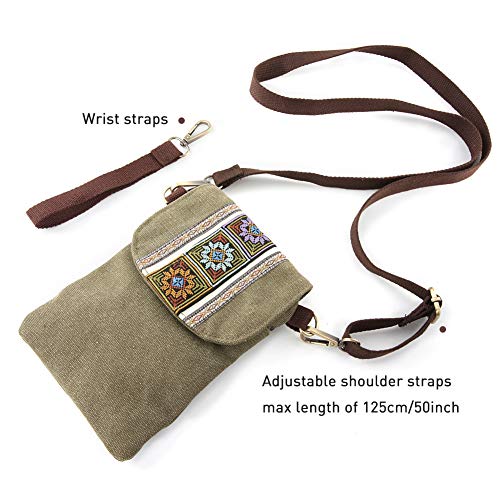 SILKAREA Vintage Embroidered Canvas Flip Small Crossbody Bag Cell Phone Pouch for Women Wristlet Wallet Bag Coin Purse 7