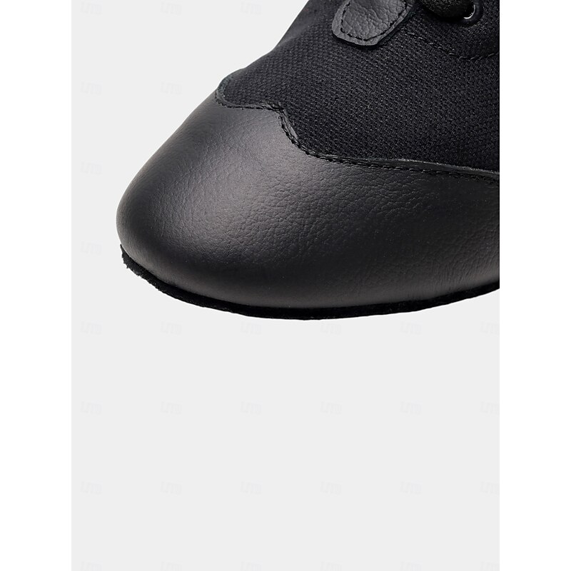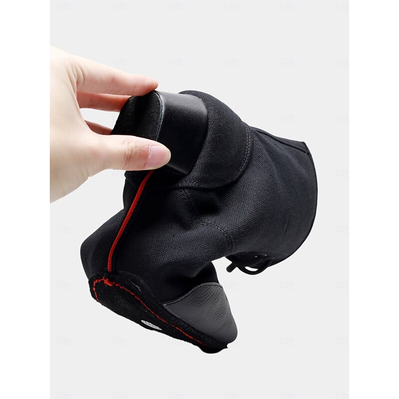Highlights [Fabric] Crafted with a solid canvas upper, these dance boots offer excellent breathability and flexibility, while the leatherette material enhances both comfort and style. The combination ensures a faultless balance of durability and aesthetics for dancers. [Fit] Designed with a low, broad heel and a round toe shape, these boots provide stability and comfort, ideal for prolonged wear during rehearsals or performances. The lace-up closure ensures a secure and adjustable fit. [Design Highlights] The sleek, professional look is accented by red stitching on the suede sole, adding a touch of elegance. The reinforced leather sections on the toe and heel provide additional support where it’s needed most. [Occasions] Perfect for professional ballroom, Latin, and jazz dance settings, these boots are also suitable for stage performances and evening events. Their versatile design makes them a great choice for dancers aiming to achieve both performance and style. [Size Notice] Available in sizes US5.5 to US8.5, these shoes are true to standard sizing. Select your usual size for the best fit.