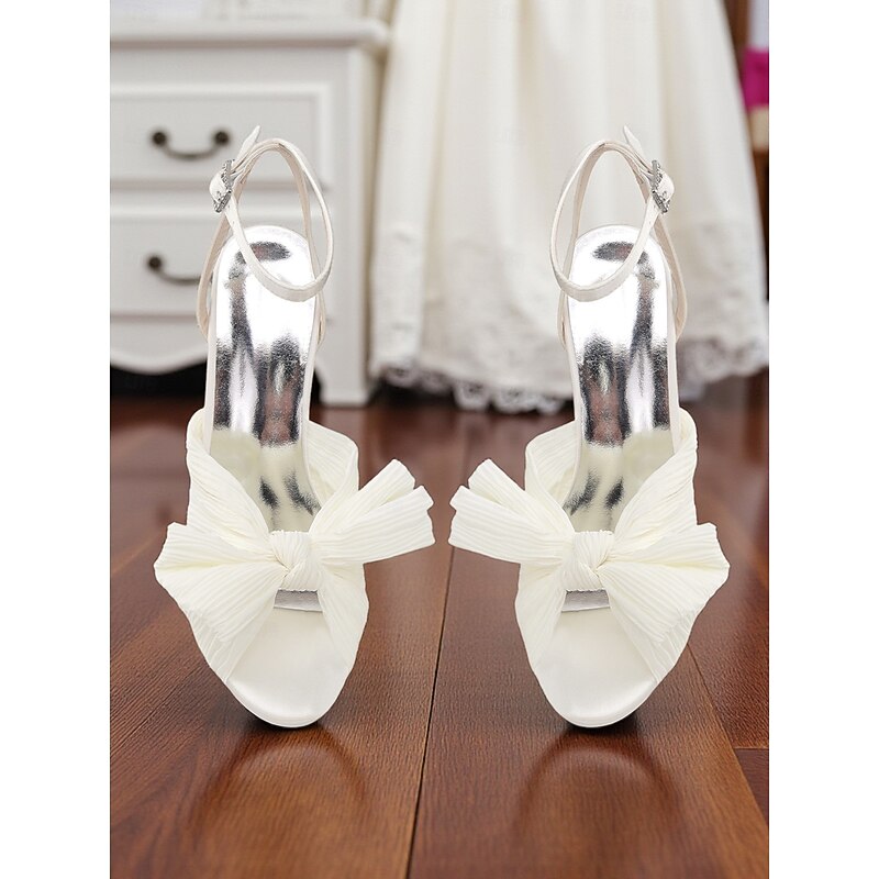Why Choose Women's White Platform High Heel Sandals with Ankle Strap and Bow Detail - Elegant Dress Shoes for Weddings and Formal Occasions?