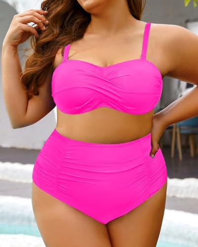 Yonique Women Plus Size High Waisted Bikini Sets Two Piece Strapless Swimsuits Tummy Control Bathing Suit Bandeau Swimwear 5