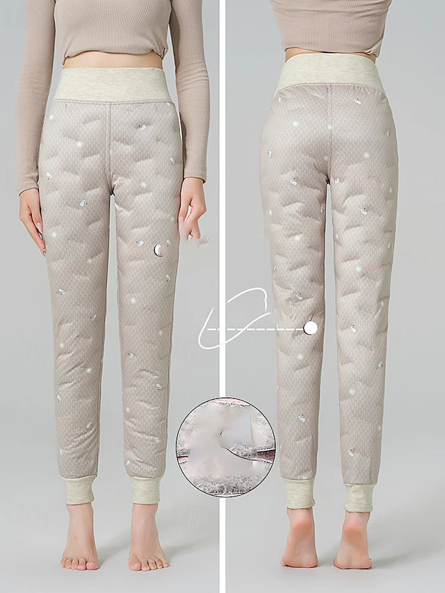 More information about Women's Chinos Down Pants Casual Full Length Medium Waist Plain Elastic Waist Thermal Warm Comfortable Micro-elastic Outdoor Vacation Street Khaki Winter Regular Fit