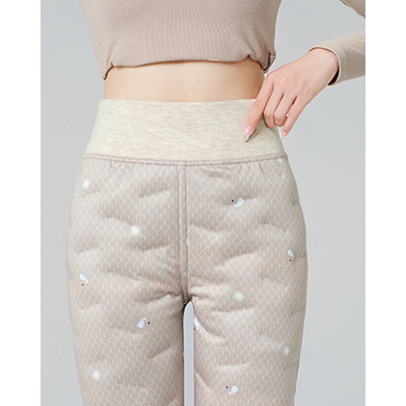 HOT ! Women's Chinos Down Pants Casual Full Length Medium Waist Plain Elastic Waist Thermal Warm Comfortable Micro-elastic Outdoor Vacation Street Khaki Winter Regular Fit