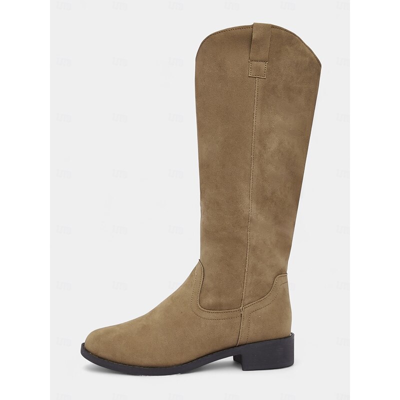 Women's Khaki Mid Calf Boots – Casual Western Style Low Heel Boots for Fall and Everyday Wear 1
