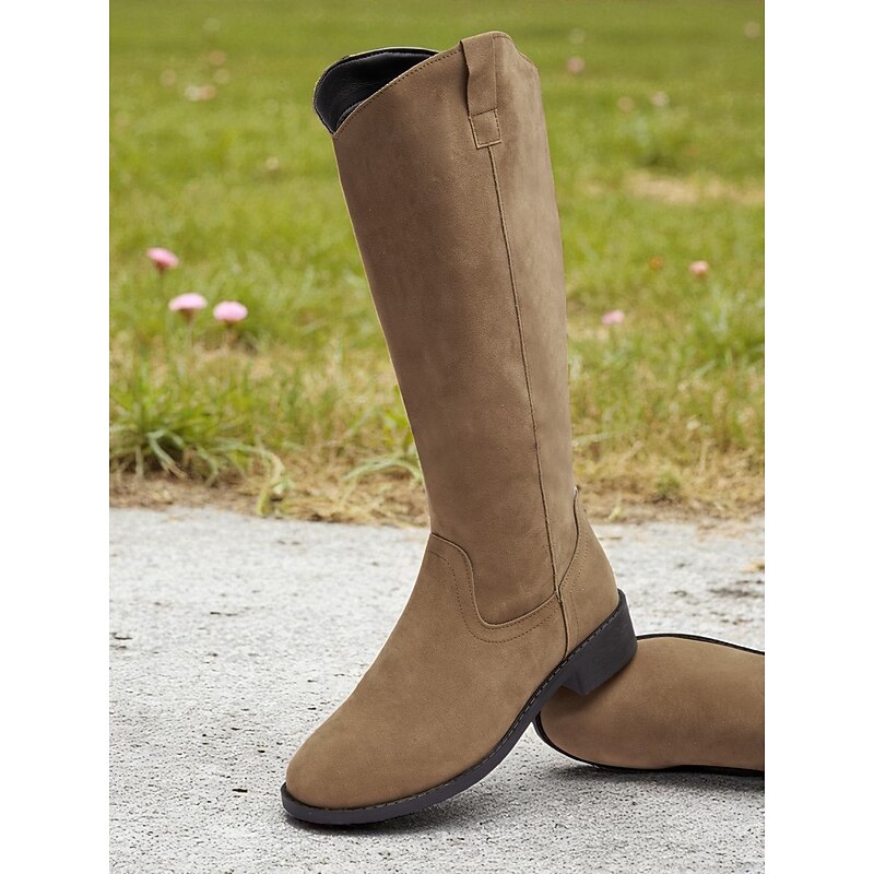 HOT ! Women's Khaki Mid Calf Boots – Casual Western Style Low Heel Boots for Fall and Everyday Wear