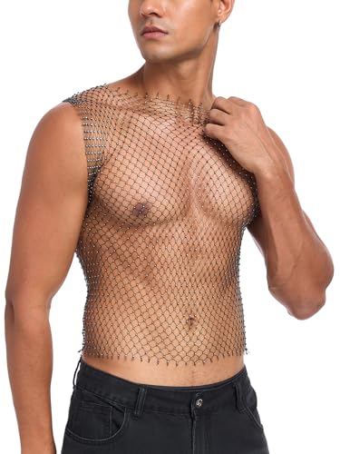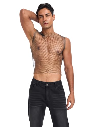 More information about CYCLAMEN Rhinestone Mens Tank Tops Fishnet Sparkly Diamond Sleeveless Shirt See Through Festival Sexy Outfits Rave Party