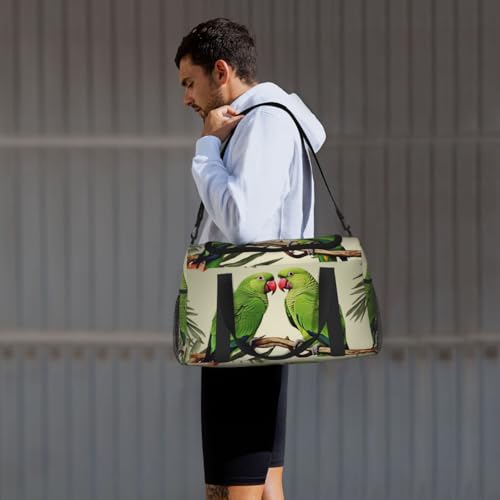 Travel Duffel Bag Lightweight Waterproof Carry On Tote Bag Foldable Weekender Overnight Bags Couple Parrots Olive Sport Gym Bag For Women Men 7