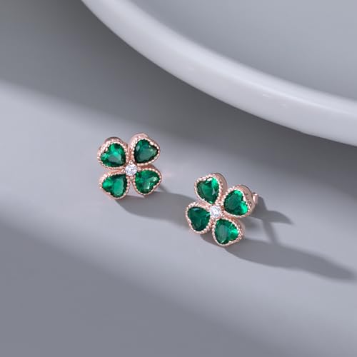 More information about SLUYNZ Solid 925 Sterling Silver Green Clover Earrings Stud for Women Teens treasure CZ Clover Stud Earrings for Spring Summer