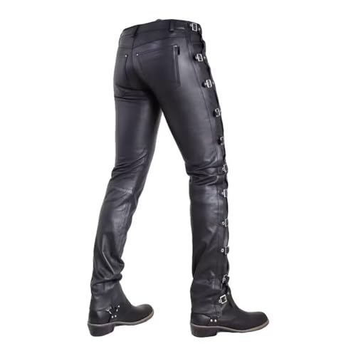 More information about Men's Black Stylish Side Buckle Leather Biker Pant