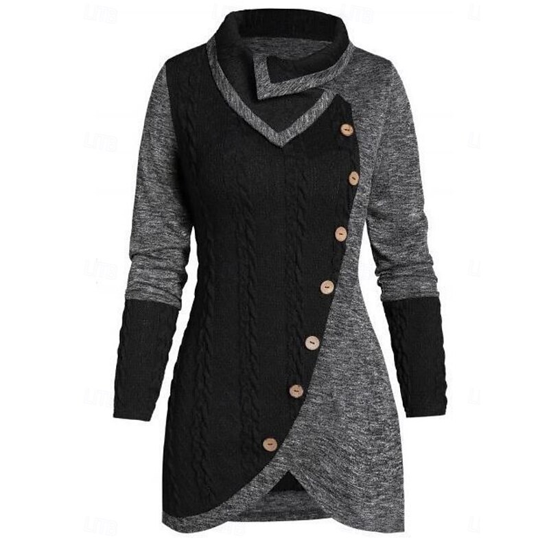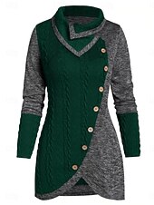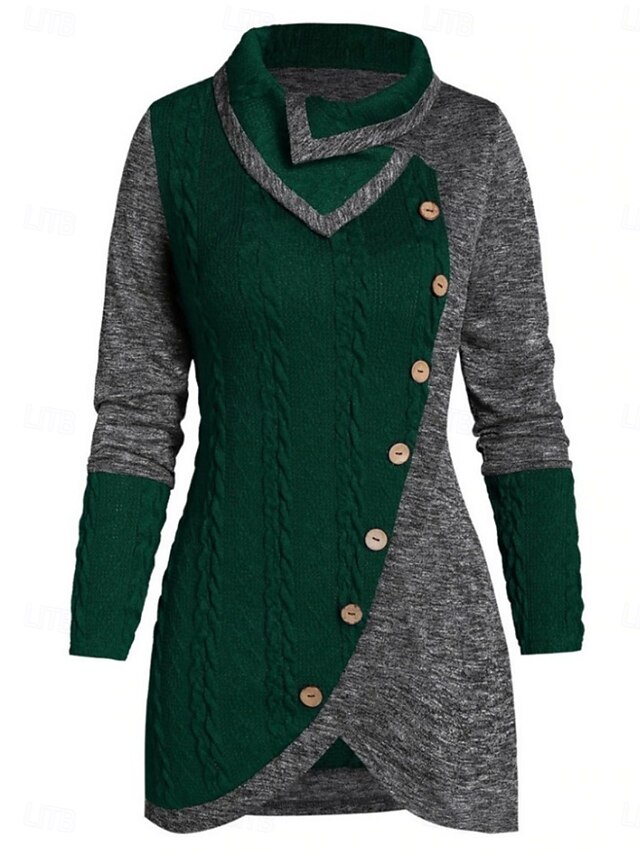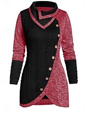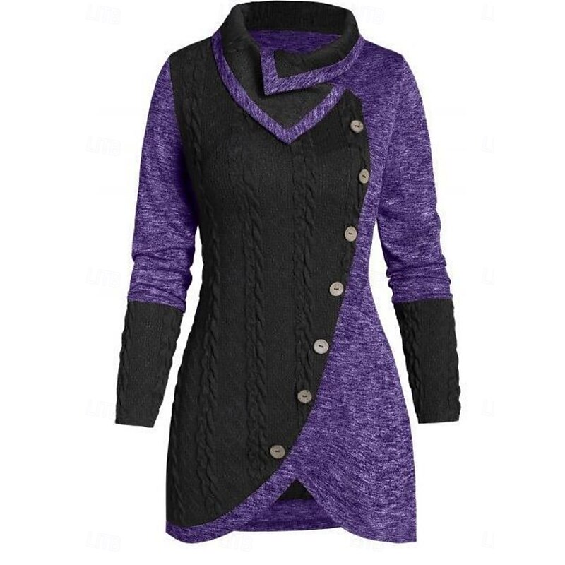 More information about Women's Sweater Casual Soft Color Block Cable Turtleneck Knitted Long Sleeve Regular Tops Knit Outdoor Daily Weekend Black Purple Fall Winter
