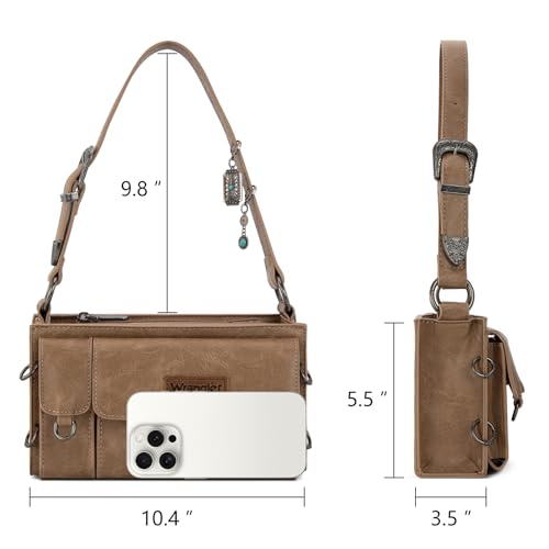 HOT ! Wrangler Small Shoulder Bag Y2K Purse for Women with Chic Detachable Charms & Multiple Pockets