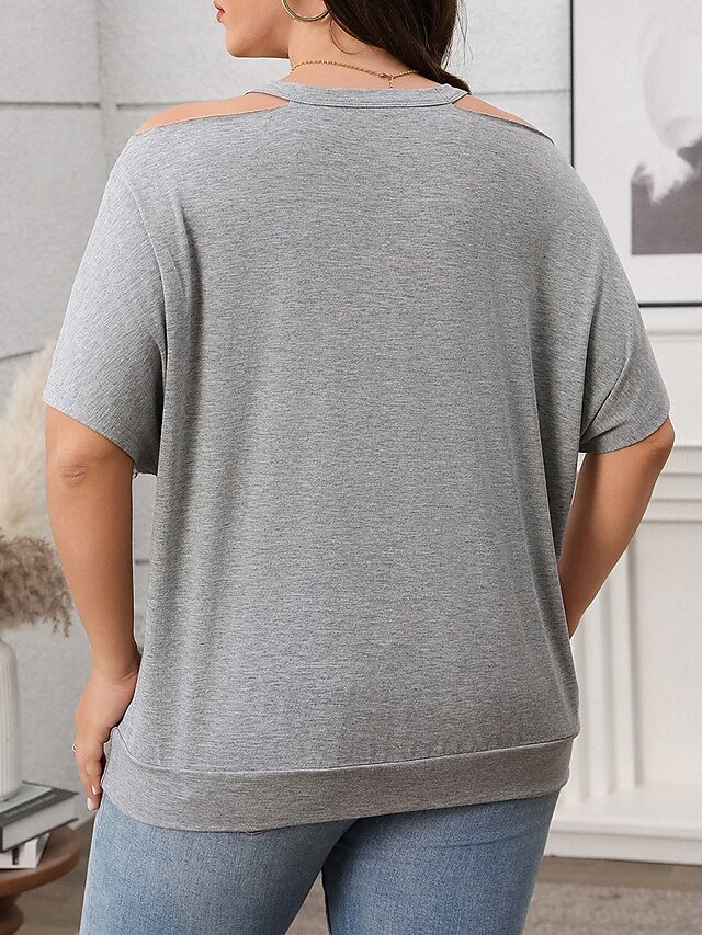 Women's Plus Size Tops T Shirt Graphic Letter Short Sleeve V Neck Casual Daily Polyester Summer Spring Black khaki 10