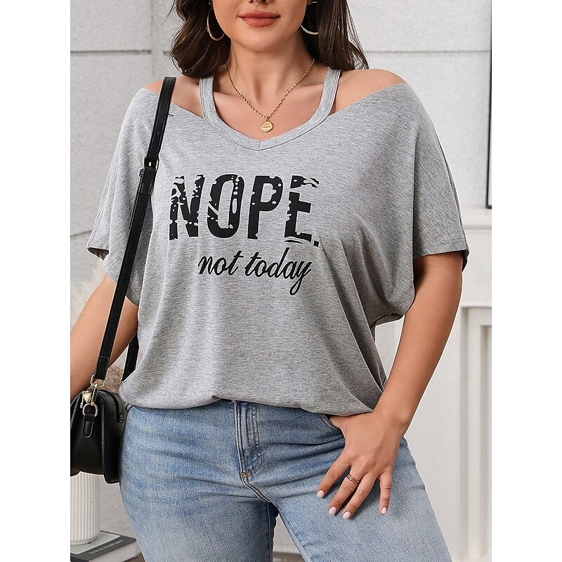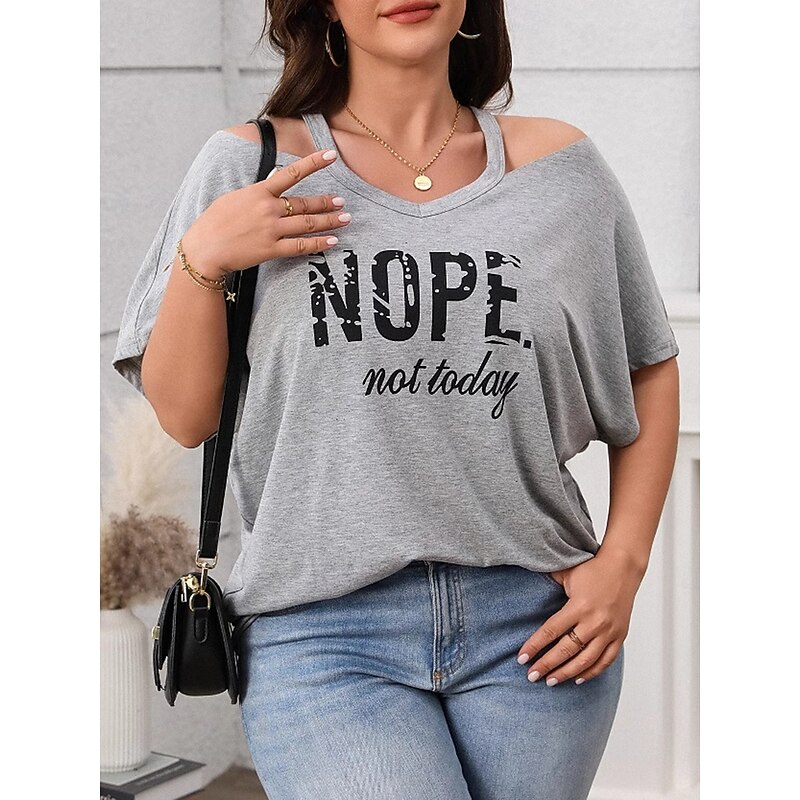 HOT ! Women's Plus Size Tops T Shirt Graphic Letter Short Sleeve V Neck Casual Daily Polyester Summer Spring Black khaki