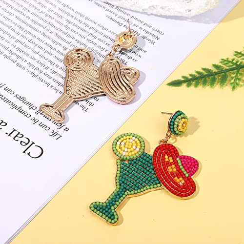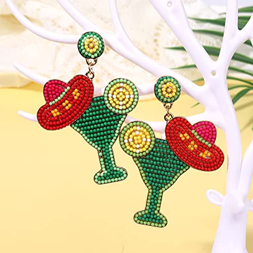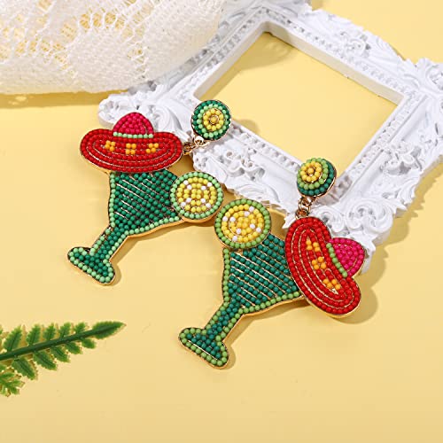 Beaded Fiesta Earrings Cin-co De Mayo Earrings Sombrero Chili Hats Mexican Dangle Earrings for Women Girls Mexican Theme Birthday Party Jewelry Gifts