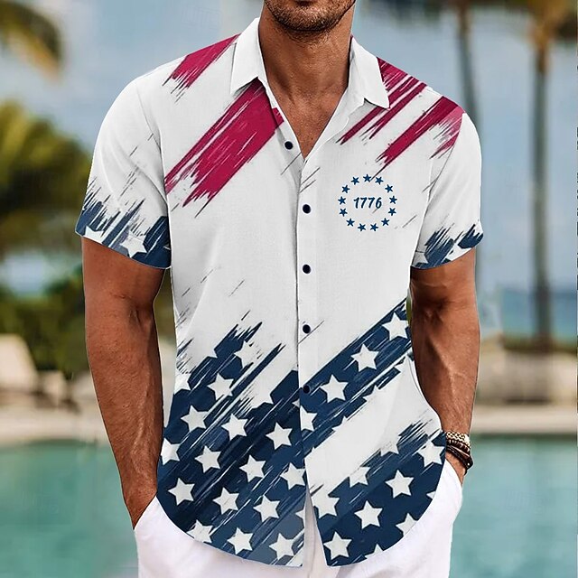 More information about Independence Day Men's US Flag Patriotic 1776 Shirt Summer Shirt Button Up Shirt Short Sleeve Fashion Casual Outdoor Vacation Dailywear Summer Spring Turndown 3D Print Collared Shirts White Blue
