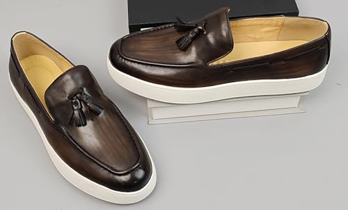 HOT ! Santimon Men’s Leather Penny Loafers with Tassels – Stylish Slip-On Dress Casual Shoes, Classic & Comfortable for Business, Weddings, and Casual Wear