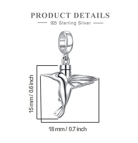 • Design Concept: The hummingbird cremation charm Perfect fits pandora charms bracelet bangle & necklace for women girls, compatible with Biagi, Troll and Chamilia european bracelets. Hummingbird urn pendant charm can hold a small amount of ashes of your loved ones or pet or cherished friend or important relative. If you don't want/have ashes, you can also add crushed flowers, dirt, hair, sand or notepaper