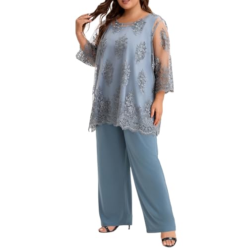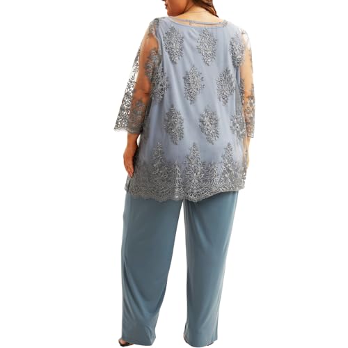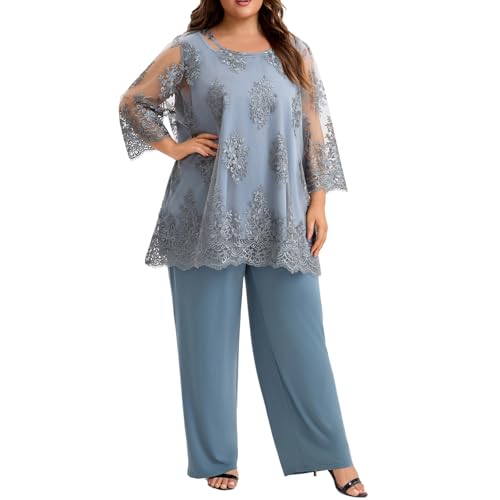 • INCLUDED:This stunning plus size cocktail pantsuit features a unique two-piece design: a soft stretchy round neck vest with custom lace embroidery mesh, paired with loose stretchy pants. It crafts a polished look for your special day without sacrificing comfort