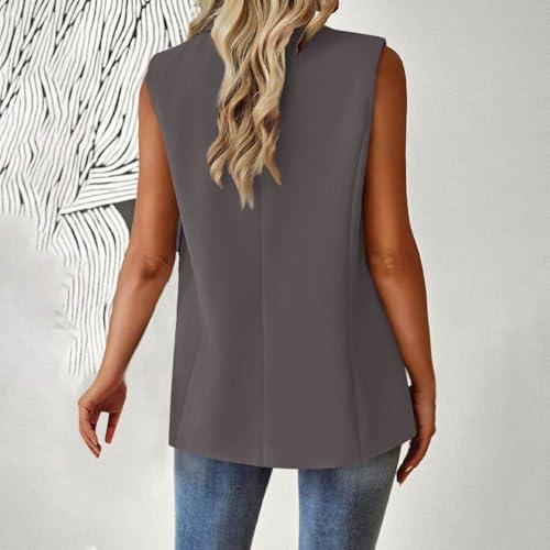 Women's Sleeveless Blazer Vest Open Front Button Down Blazer Casual V Neck Work Office Summer Jacket with Pockets 7
