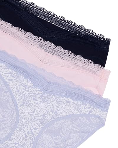 Tommy Hilfiger Women's 3pk Cotton Logo Lace Trim V Bikini 3