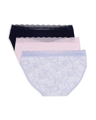 Tommy Hilfiger Women's 3pk Cotton Logo Lace Trim V Bikini 6