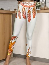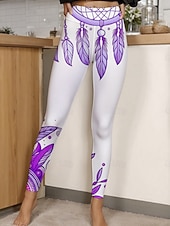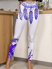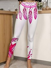 More information about Women's Pants Trousers Leggings Cozy Leggings Streetwear Casual Full Length High Waist Feather Elastic Waist Print Breathability Comfortable Stretchy Vacation Street Daily Wear Dark purple Pink