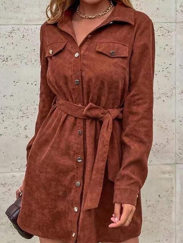 More information about Women's Shirt Jacket Shacket Warm Comfortable Pocket Buttons Casual Plain Daily Wear Going out Casual Daily Weekend Single Breasted Long Turndown Regular Fit Long Sleeve Outerwear Brown Fall Winter