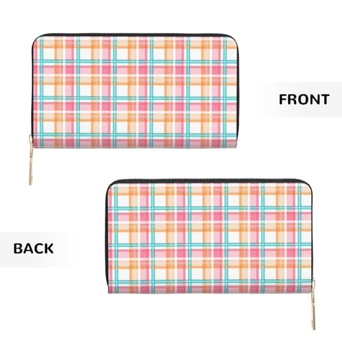 HOT ! Wallet Women - Pink Yellow Plaid Print Leather Wallet for Women with Zipper, Cute Bifold Long Ladies Wallets