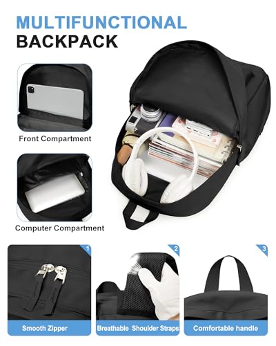 VGCUB Black School Backpacks Travel Book Bag Waterproof Work Light Aesthetic College Backpack for School Girls Boys Teens Mochilas Escolares Para Niñas Casual Daypack for Women Men 3