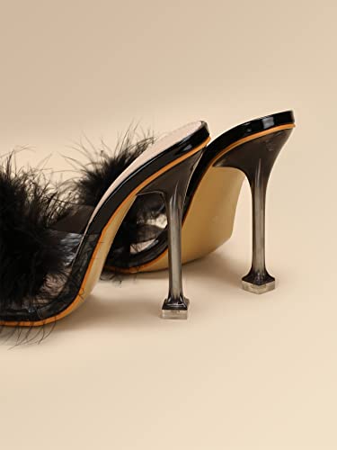 Women White Feather Clear PVC Slippers Square Toe Stilettos Slides Transparent Crystal High Heels Sandals Mules Party Shoes Glass Heels 5