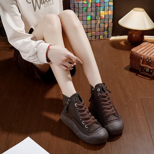 DirraBra Women's Leather Lace Up Platform High Top Sneakers Side Zipper Comfortable Lightweight Casual Walking Shoes Fashion Versatile Breathable Non-Slip Casual Shoes 5