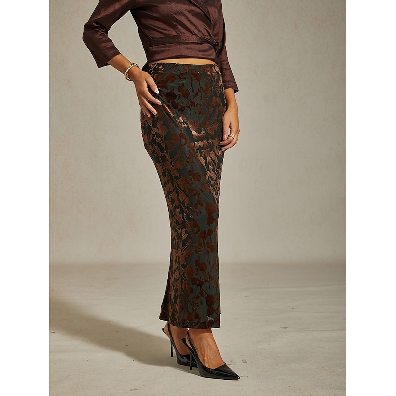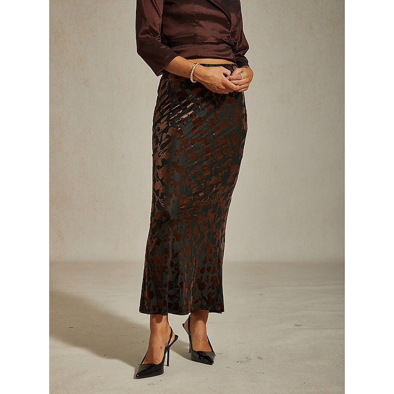 More information about Women's Skirt Trumpet / Mermaid Elegant Vintage Maxi High Waist Skirts Stretchy Brown Spring Velvet