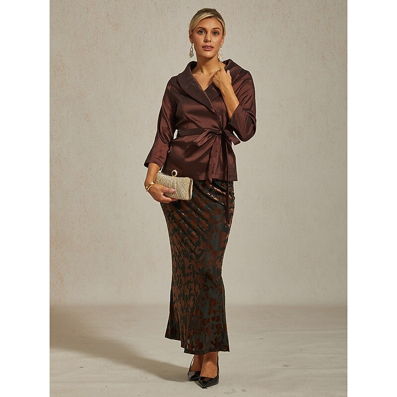 Women's Skirt Trumpet / Mermaid Elegant Vintage Maxi High Waist Skirts Stretchy Brown Spring Velvet 2