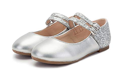 WUIWUIYU Girls Hook-and-Loop Round Toe Shinny Leather Dance Ballet Flats Dress Mary Jane Shoes 7