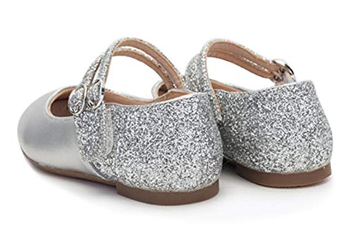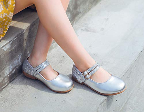 WUIWUIYU Girls Hook-and-Loop Round Toe Shinny Leather Dance Ballet Flats Dress Mary Jane Shoes 4