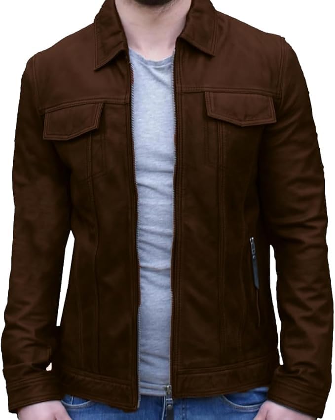 Men’s Vintage Trucker Lambskin Leather Jacket – Classic Retro Shirt Collar Style for Men 1