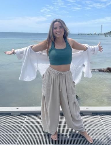 HangNiFang Cotton Linen Wide Leg Pants for Women High Waisted Beach Palazzo Harem Pants 6