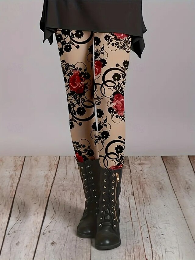 More information about Women's Leggings Vacation Vintage Fashion Full Length High Waist Floral Graphic Printing Thermal Warm Soft Breathable Stretchy Formal Outdoor Vacation Blue Green Khaki Amethyst Spring Fall Slim Fit