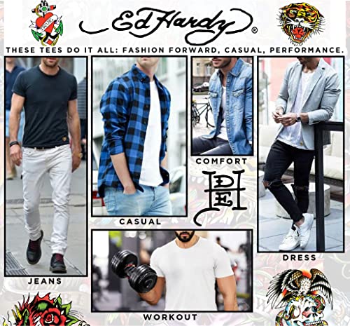 • SUPREME SOFTNESS: Ed Hardy's Micro Modal mens fitted shirts offer an irresistibly soft touch. Enjoy ultimate comfort as these versatile mens tees effortlessly transition from men's undershirts to casual wear or gym attire.
