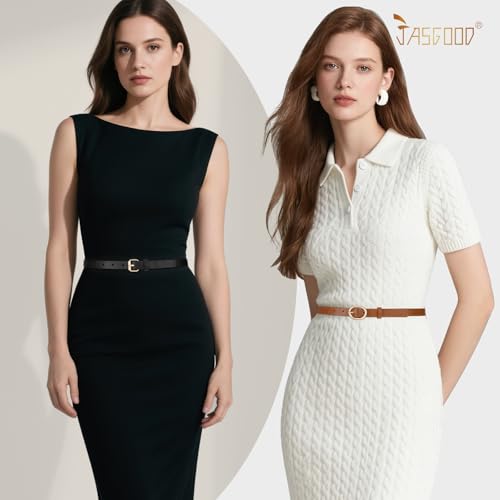 HOT ! JASGOOD 4 Pack Women Skinny Leather Belt for Dresses with Gold Buckle Ladies Thin Waist Belt for Jeans Pants