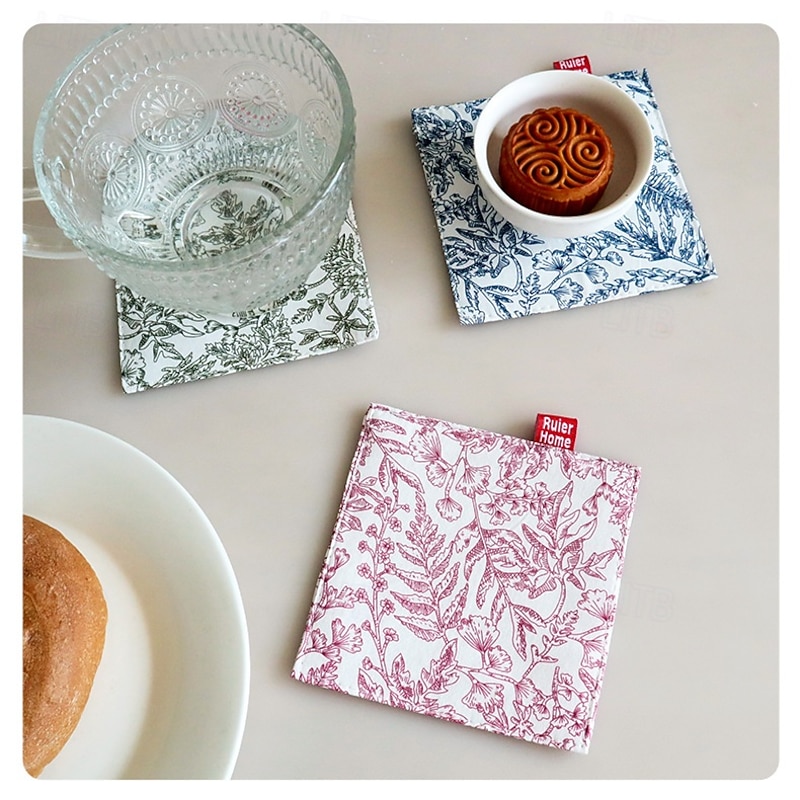 Fabric Coaster With Printed Double-Layer Insulation Pad, Simple Style Square Mug Pad 5
