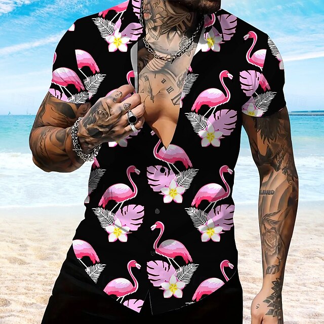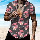 HOT ! Men's Flamingo Beach Shirt Aloha Shirt Short Sleeve Hawaiian Vacation Summer Spring Turndown Button Up Black Gray