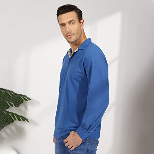 Opomelo Men's Long Sleeve Pullover Polo Shirts-Casual Loose Fit Sweatshirts V Neck Tops 4