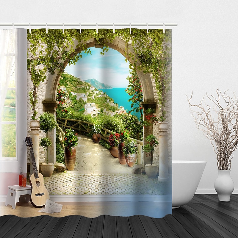 Beautiful Landscape Nature Landscape Print Waterproof Shower Curtain Modern Polyester Machined Waterproof Bathroom With Hooks 12
