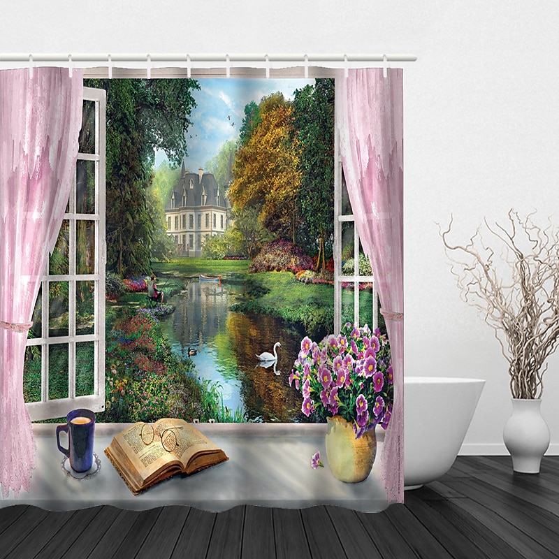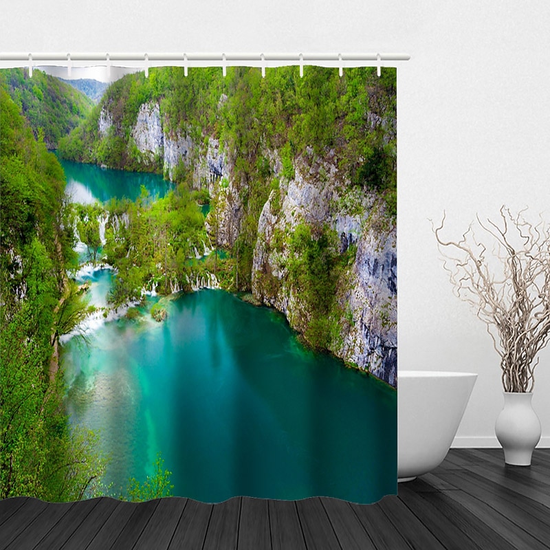 Beautiful Landscape Nature Landscape Print Waterproof Shower Curtain Modern Polyester Machined Waterproof Bathroom With Hooks 1