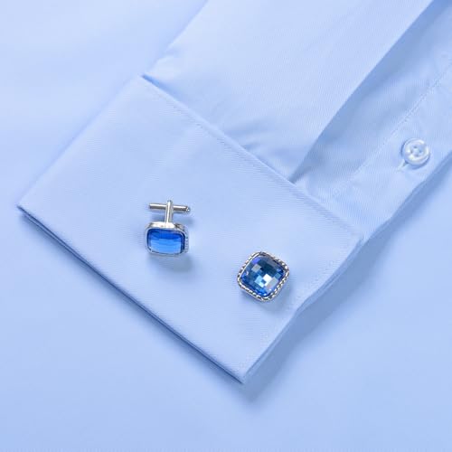 Men's Solid Color Long Sleeve French Cuff Dress Shirts, Hidden Button Front, Includes Blue Gemstone Cufflinks 3