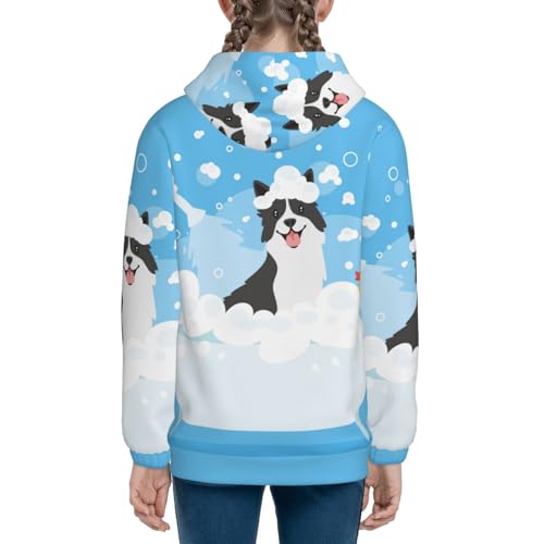 Collie in Bathtub Kids Pullover Hoodies Boys Zip Up Sweatshirts Girls Athletic Clothes with Pocket 5