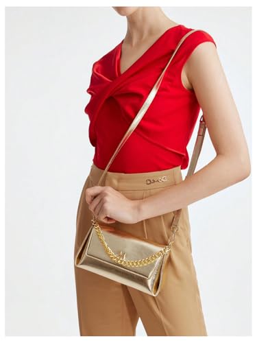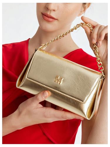 HOT ! QWINEE Women's Gold Purses Leather Crossbody Bags Metallic Flap Clutch Mini Square Bag for Wedding/Prom/Party